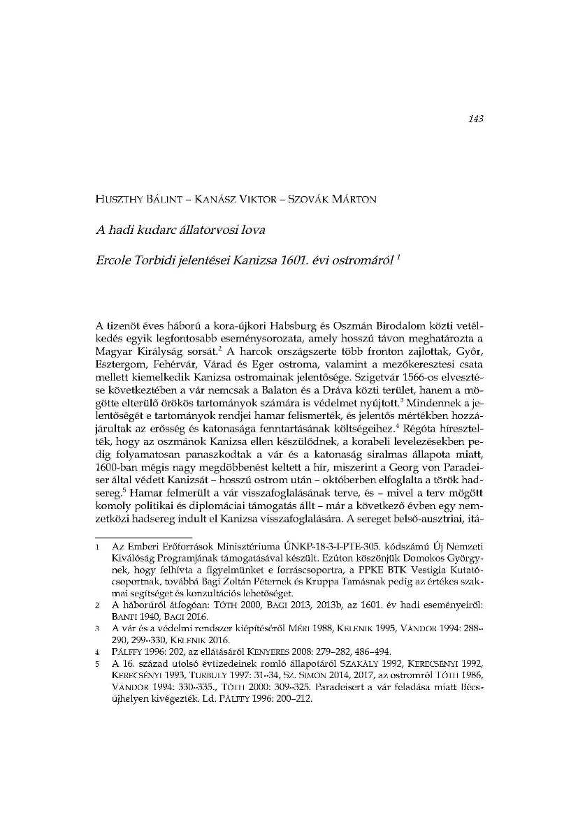 A hadi kudarc állatorvosi lova_Ercole Torbidi jelentései Kanizsa 1601 év