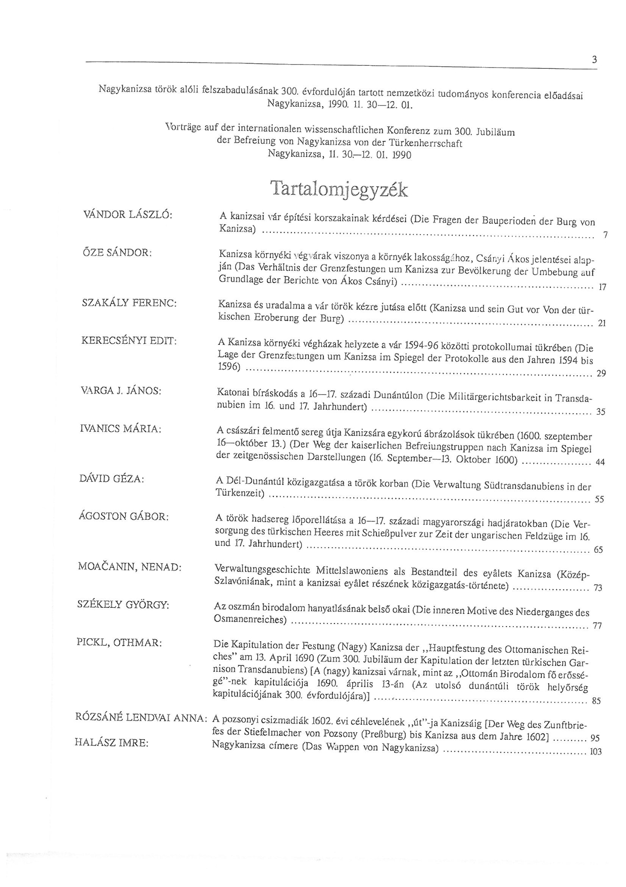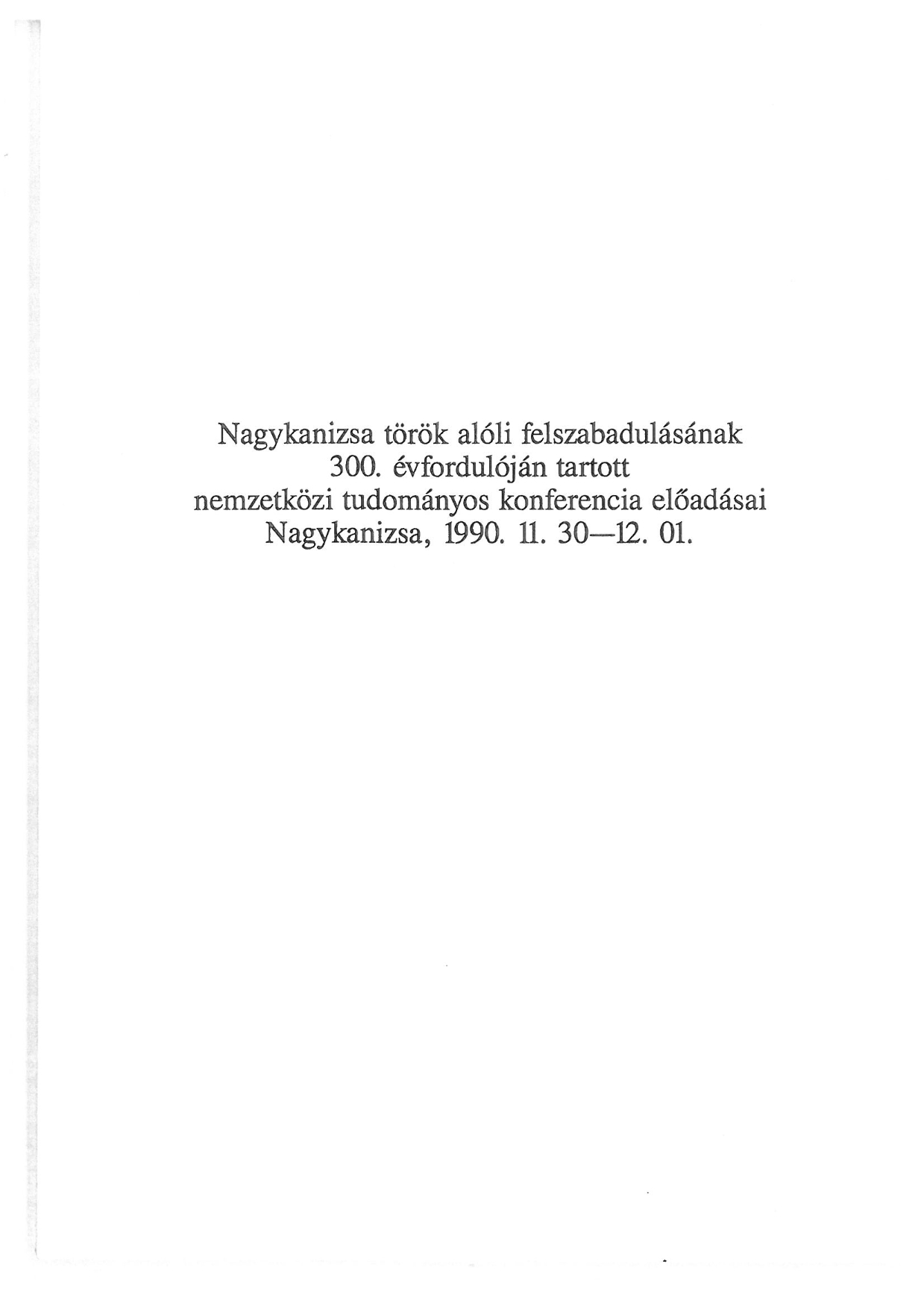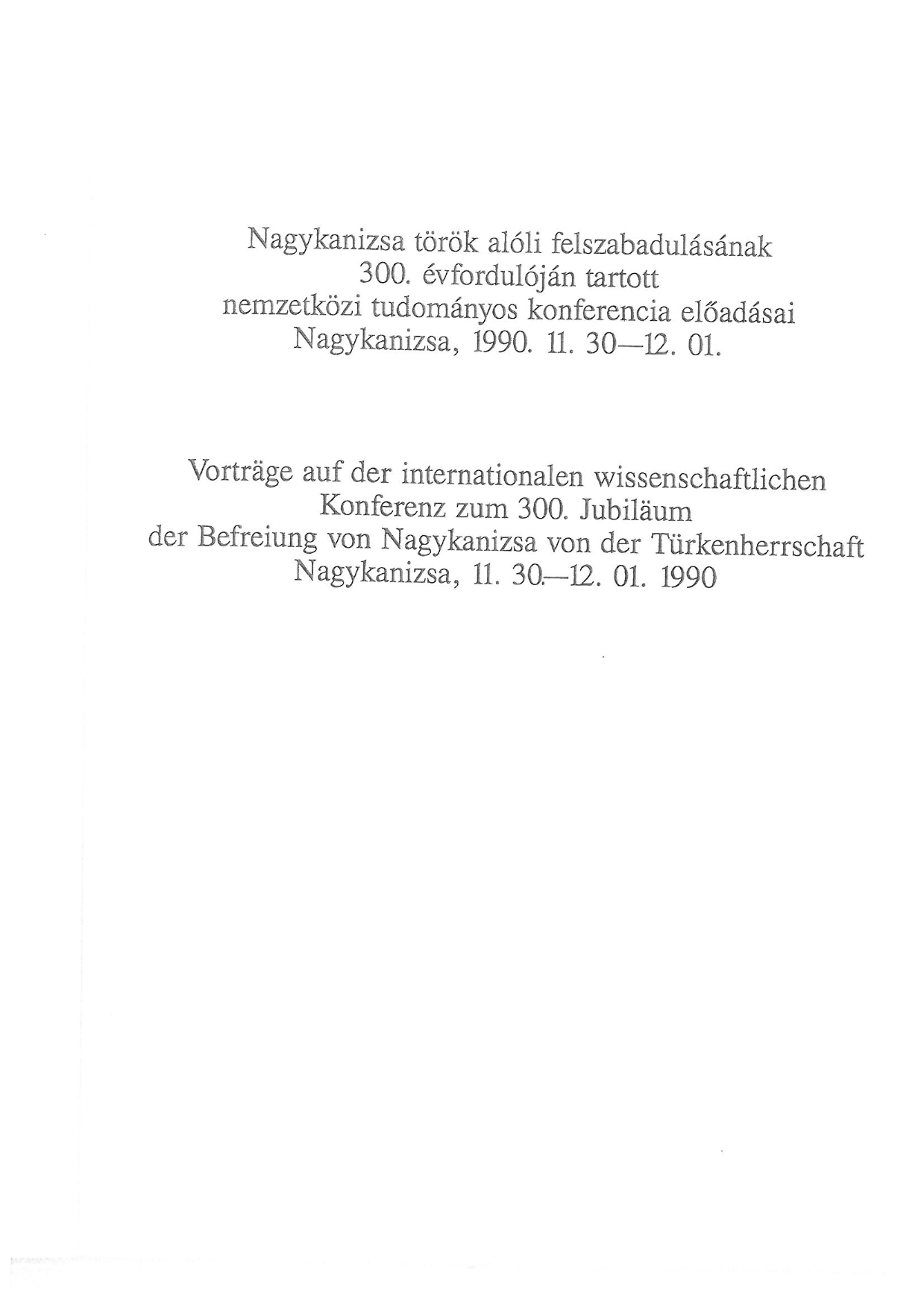 Nagykanizsa török alóli felszabadulásának 300. évfordulóján tartott konferencia anyaga
