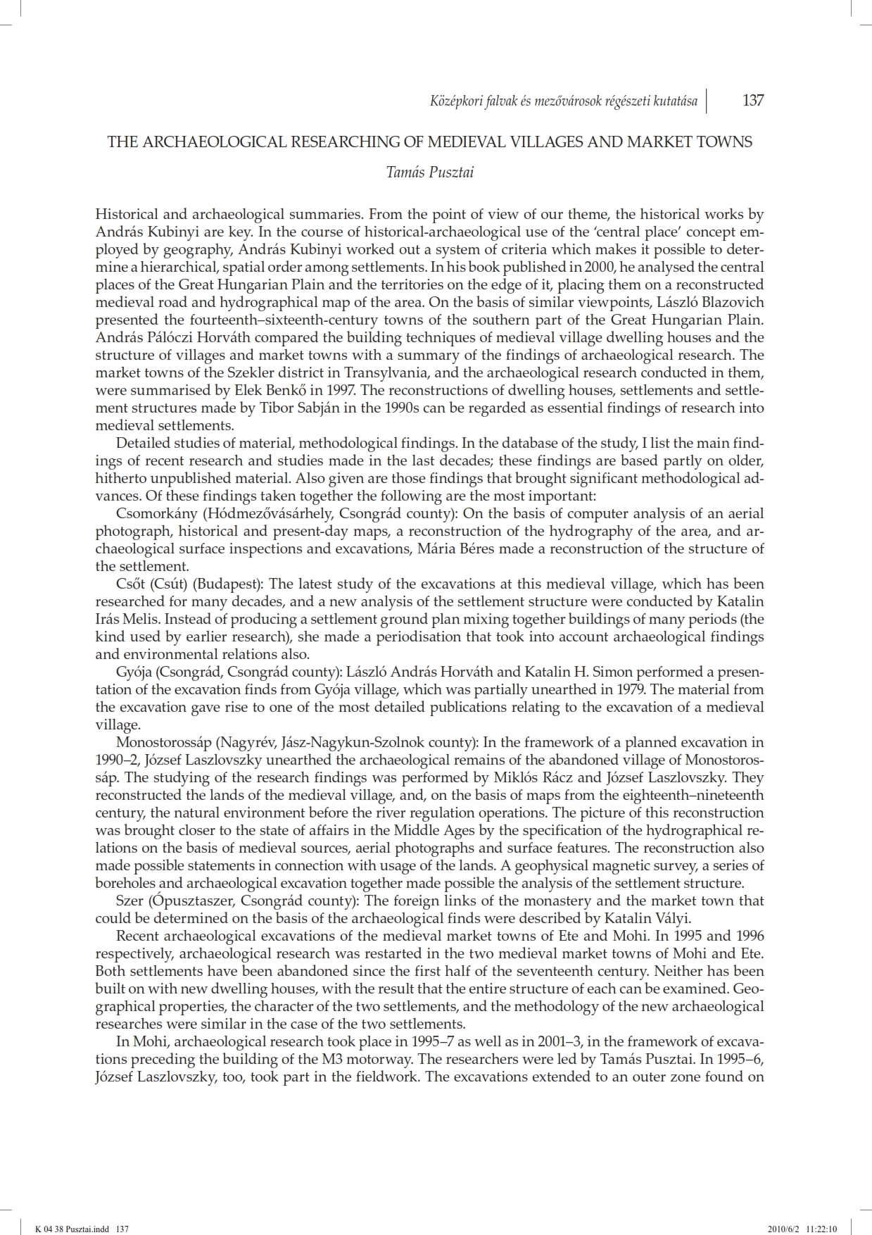 Pusztai Tamás - Középkori falvak és mezővárosok régészeti kutatása